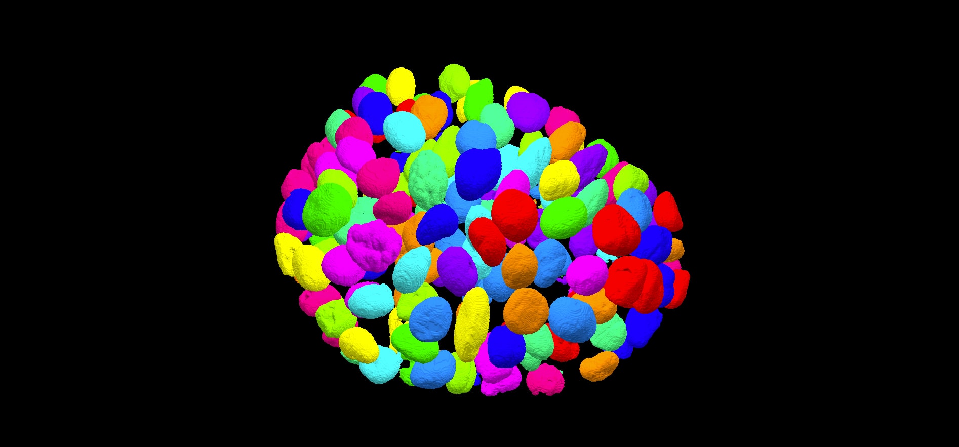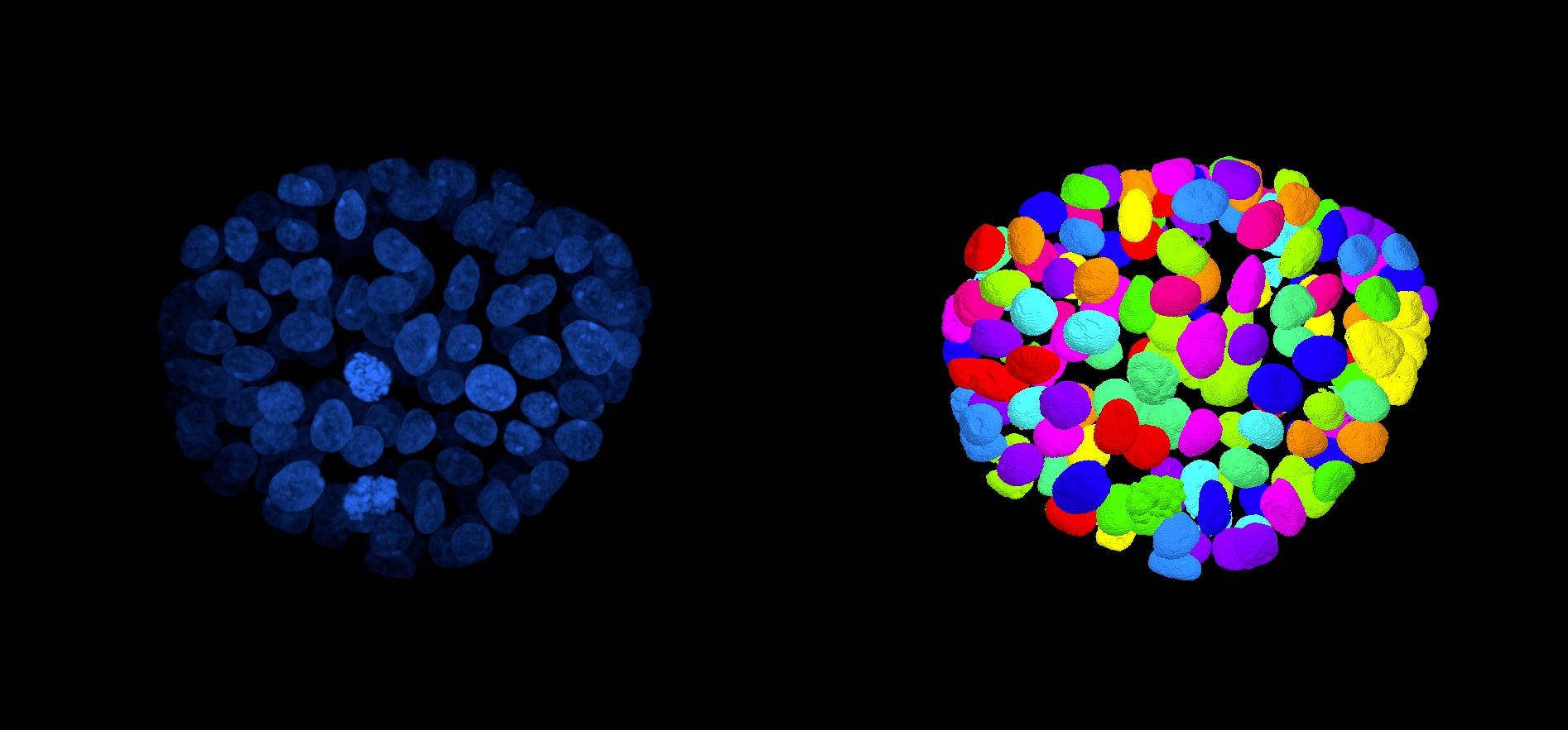 Figure C: 3D volume view and corresponding objects (nuclei) identification