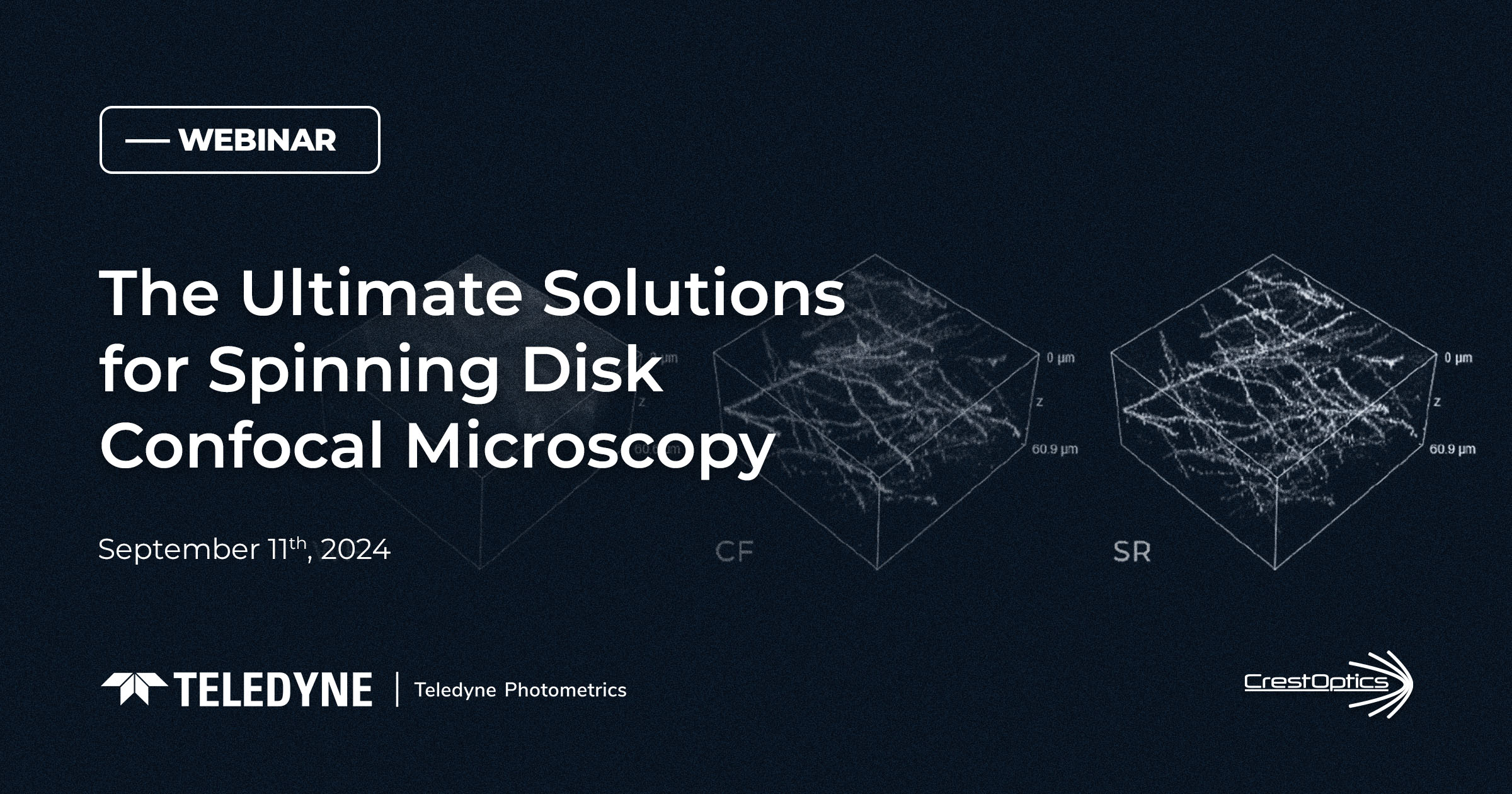 Live Webinar with Teledyne Photometrics, tune in to explore vital components for the ultimate spinning disk confocal and super-resolution microscopy imaging systems, featuring CrestOptics X-Light V3 and DeepSIM, together with the Kinetix sCMOS camera by Teledyne Photometrics. Discover how these technologies can transform your microscopy workflows and enhance the quality and resolution of your data.
