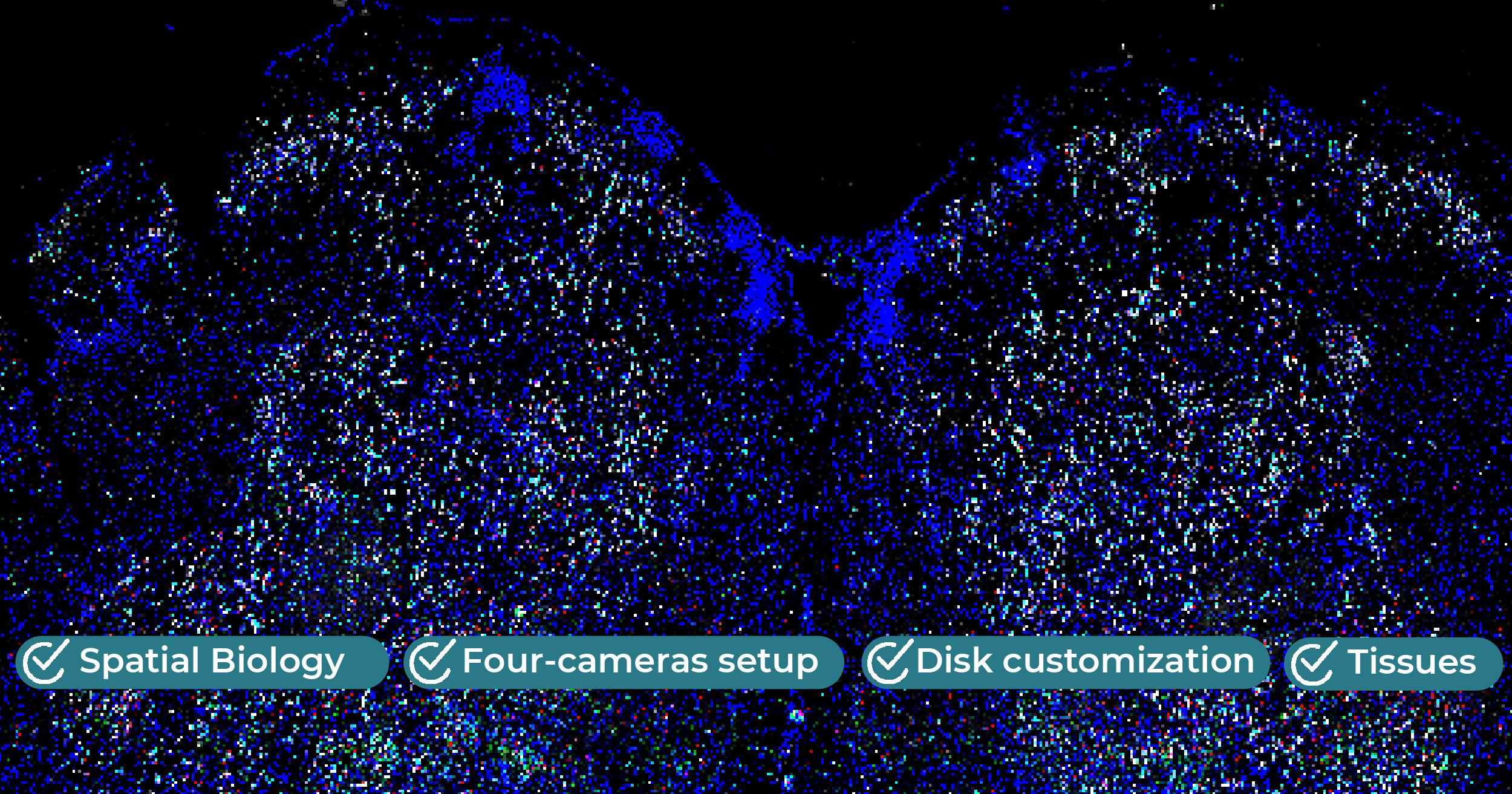 Due to their capacity to allow both proteomics and transcriptomics profiling, spatial biology techniques are advancing rapidly as powerful tools to obtain an in-depth understanding of tissues. With the primary goal of creating complete maps of large and complex tissues by studying individual cells, these techniques represent a game-changer in learning about their function. Spatially resolved transcriptomics studies can be carried out by microscopy through, for example, in situ sequencing or multiplexed fluorescence in situ hybridization. CrestOptics X-light V3 spinning disk microscopy provides a robust solution for high-throughput single-cell resolution imaging for spatial biology analysis.