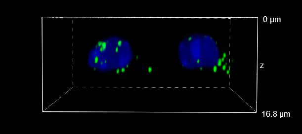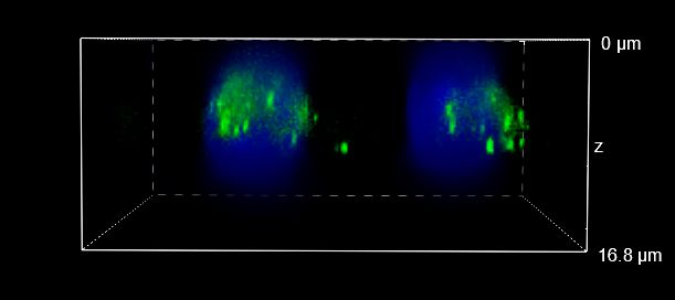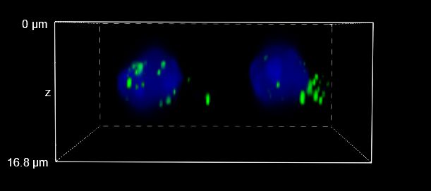 In Figure 4 we focused on the axial resolution showing XY, XZ and YZ orthogonal views (Figure 4A) and 3D volume views (Figure 4B) of images acquired with a CFI Plan Apo Lambda 60X oil objective in 16 um Z-range (0.2 um steps). To make visualization easier and optical sectioning clearer, we focused on two single cells and one single RNA species. The comparison between WF and the acquisitions made with HT-Slits and ST spinning disks clearly show how it is important the use of a CF technique to image such small and closely spaced dots. In fact, the orthogonal projections and 3D views in Figure 4 show a clear improvement in the Z-sectioning moving from WF to CF modality and similar image quality between the acquisitions taken with the two disks.