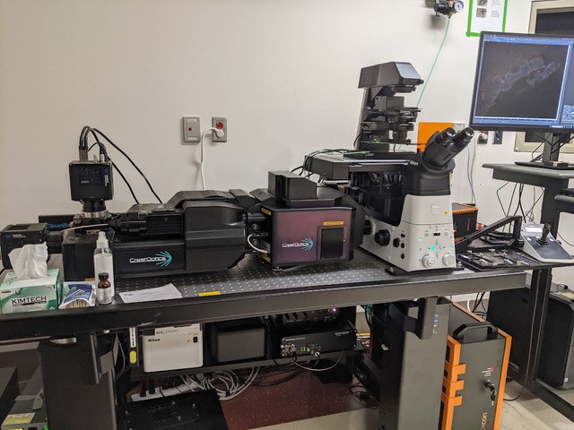 The lab utilizes a high-performance imaging pipeline centered on the CrestOptics X-Light V3 & DeepSIM X-Light system, integrated into a Nikon Ti2 Inverted microscope platform.
